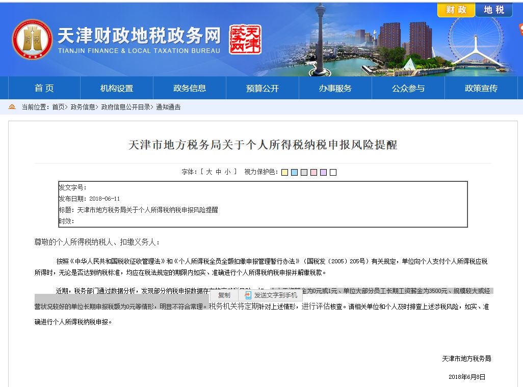 天津市地方税务局关于个人所得税纳税申报风险提醒