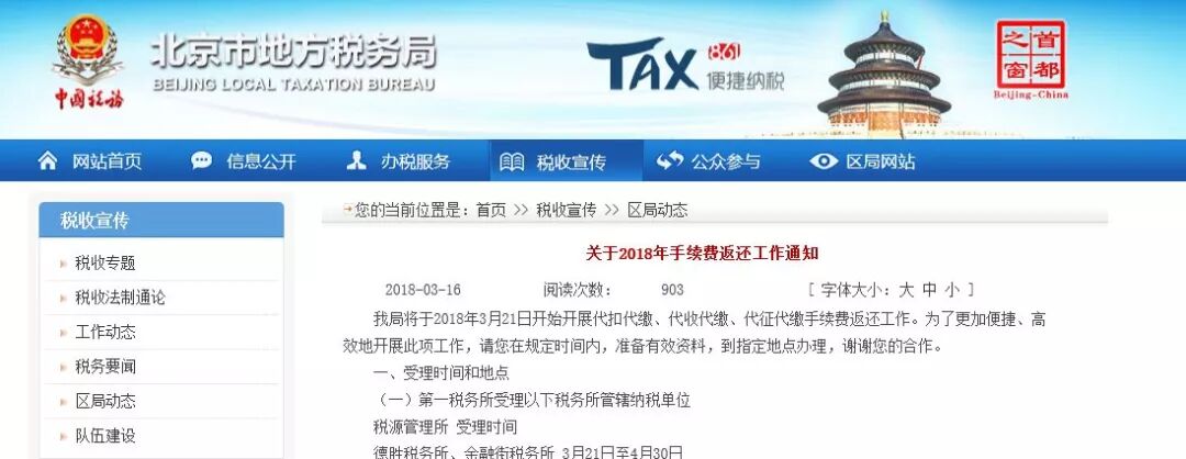 【例】北京西城区《关于2018年手续费返还工作通知》中“(六)税款所属时间(补充)”: